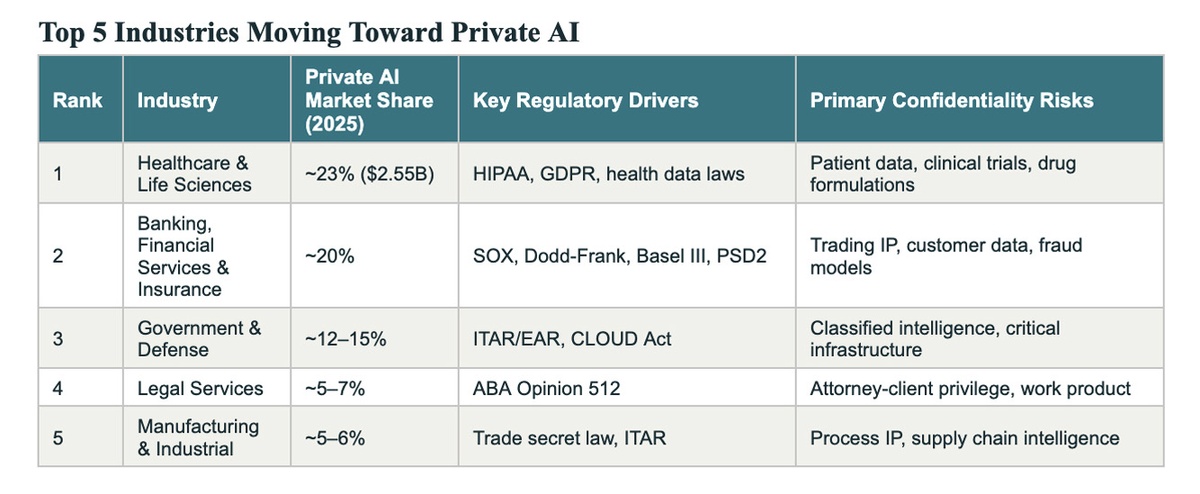 Enterprise adoption of public LLMs has created a growing security crisis. 77% of enterprise users paste company data into ChatGPT, with 34.8% of inputs containing sensitive information. Shadow AI breaches cost organizations $670,000 more on average. Court orders require OpenAI to retain consumer conversations even after deletion, creating permanent subpoena exposure. For regulated industries, the risks are existential.